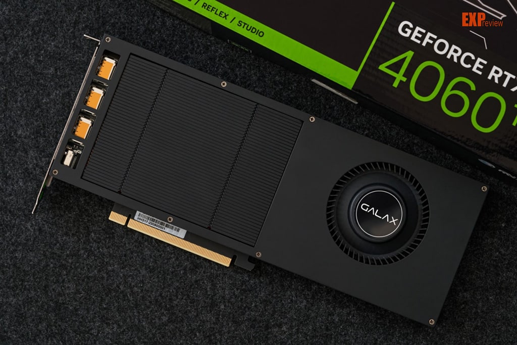 Pour refroidir très efficacement le GALAX GeForce RTX 4060 Ti, une chambre à vapeur compacte fixée à un radiateur en cuivre est utilisée. Bien qu'il semble noir, grâce à l'autre côté, vous pouvez voir qu'il est entièrement en cuivre. C'est plus cher, mais cela permet de dissiper efficacement un GPU de ce type dans un espace aussi compact. De l'autre côté, nous avons un ventilateur à turbine qui fera passer l'air à travers tout le radiateur et sera expulsé directement hors du système.