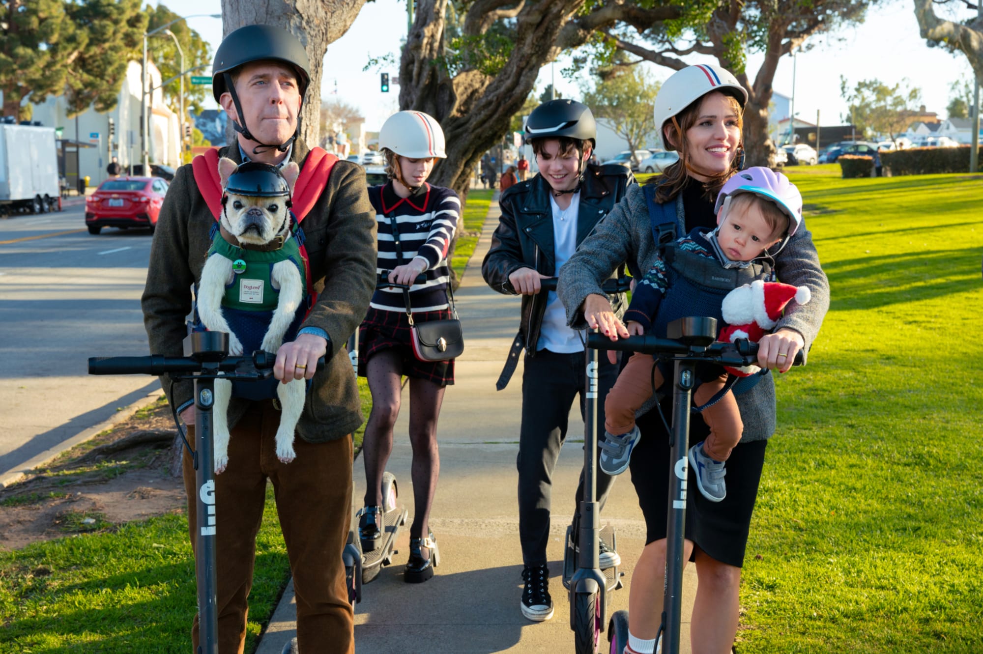 Family Switch – (de gauche à droite) Emma Myers dans le rôle de CC, Ed Helms dans le rôle de Bill, Jennifer Garner dans le rôle de Jess, Lincoln Alex Sykes et Theodore Brian Sykes dans le rôle de Baby Miles et Brady Noon dans le rôle de Wyatt dans Family Switch. Cr. Colleen Hayes/Netflix © 2023.