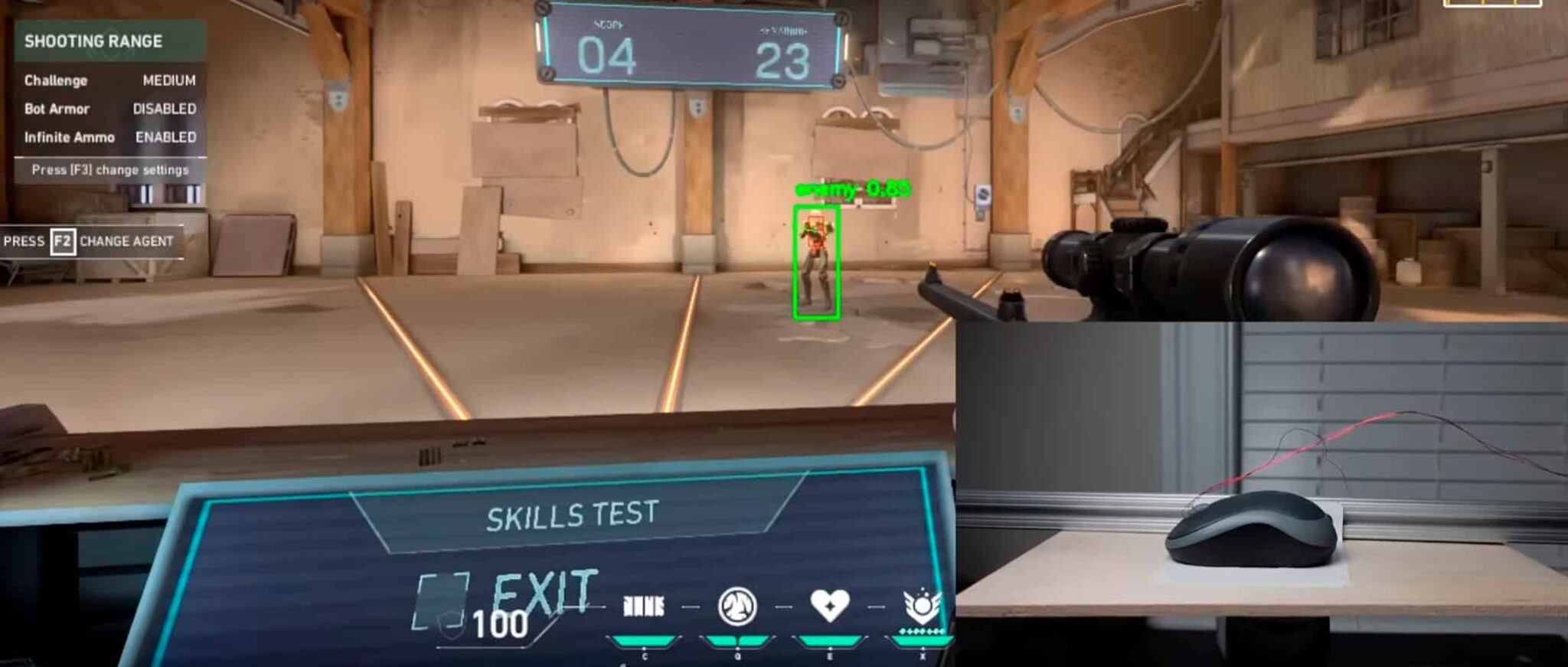 Après cela, il a formé son modèle de l'IA étiquetant manuellement des clips valorants. Défini les hitboxes (en particulier les zones d'impact de la tête et de la poitrine), en plus de mettre en œuvre un contrôle de vitesse proportionnel en fonction de la distance cible au centre. Tout cela était accompagné d'un système de retour afin que le système pointe vers le centre après chaque tir, inspiré par les pros, évitant la “dérive” de la souris. Après cela, il est maintenant temps de connaître le matériel et de voir comment son AIMBOT a fonctionné.