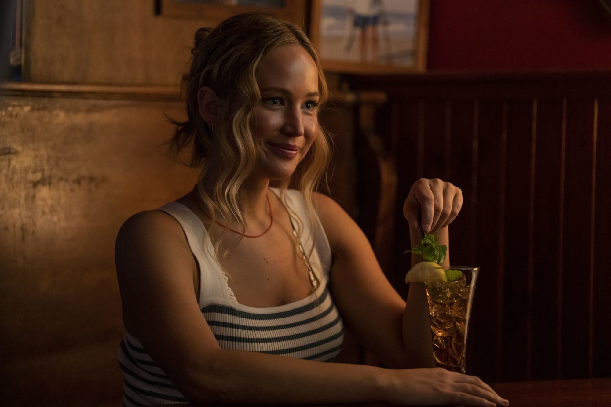 Lawrence dirige le casting de No Hard Feelings dans le rôle de Maddie Barker, une résidente de 32 ans de Montauk, New York, aux prises avec des problèmes financiers. Elle est conductrice de covoiturage et barman et cherche à payer les impôts sur sa maison et à acheter une nouvelle voiture. Tout au long du film, elle réalise la vérité sur la raison pour laquelle elle s’accroche si fortement à sa maison et reste à Montauk.